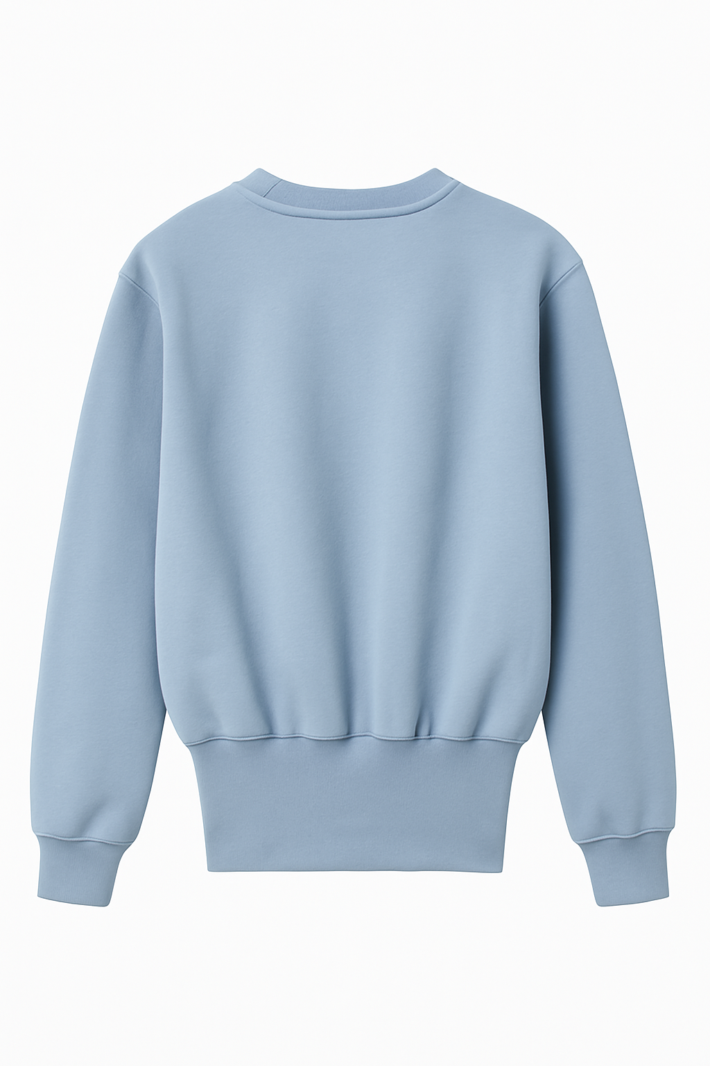 The sweatshirt is crafted from premium, cozy fleece in a serene powder-blue shade. The standout detail is the snatched cinched waist, creating a naturally sculpted shape while keeping the upper body relaxed and baggy for an effortlessly chic fit. Long sleeves and ribbed cuffs complete the clean, polished look.