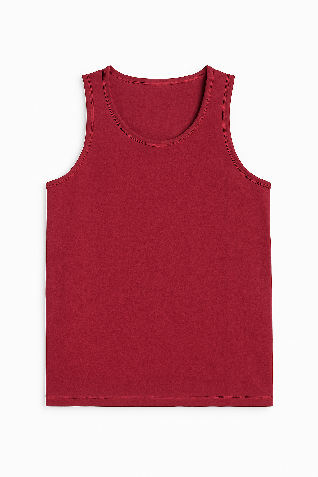 The Burgundy Tank — crafted in soft cotton with a flawless drape.