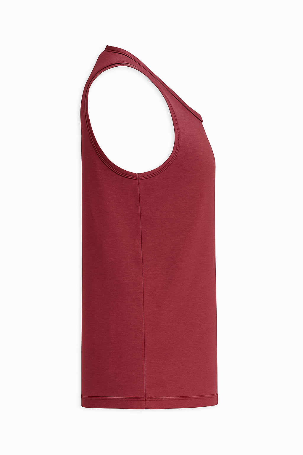A refined essential that blends effortless sophistication with everyday comfort. Crafted from a soft, breathable cotton blend, this tank offers a clean silhouette with a natural drape that complements the body. The deep burgundy hue adds quiet confidence, while the fine ribbed neckline and neatly finished hems reflect elevated craftsmanship.